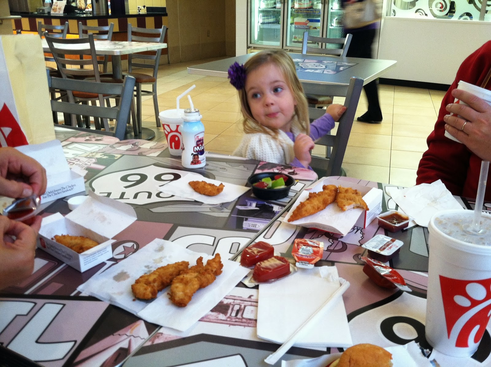 We were all shocked when she chose Chick Fil A for lunch{not really}