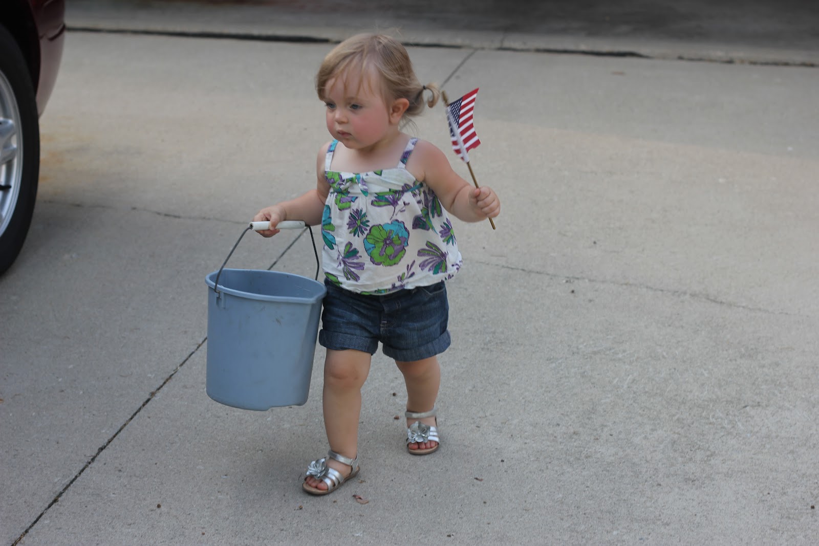 She was cracking me up. She carried around this bucket and flag all night. Then she filled the bucket with rocks and dragged it around behind her the rest of the time.