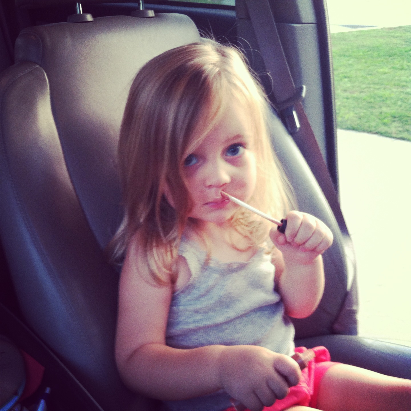 Abigail found a tube of my lip gloss one night while we were playing in the car.